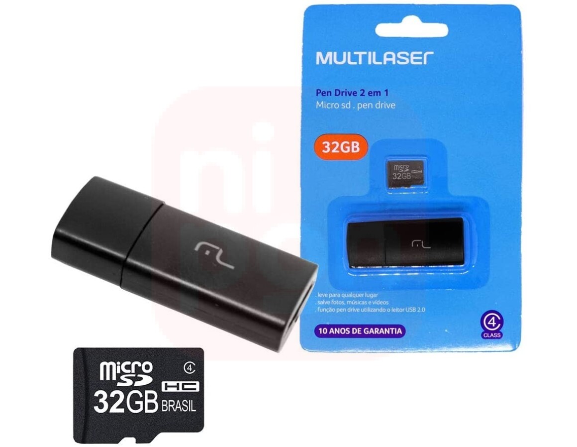 Pen Drive 2 em 1 Leitor USB + Cartão de Memória Classe 10 32GB Preto Multilaser - MC163