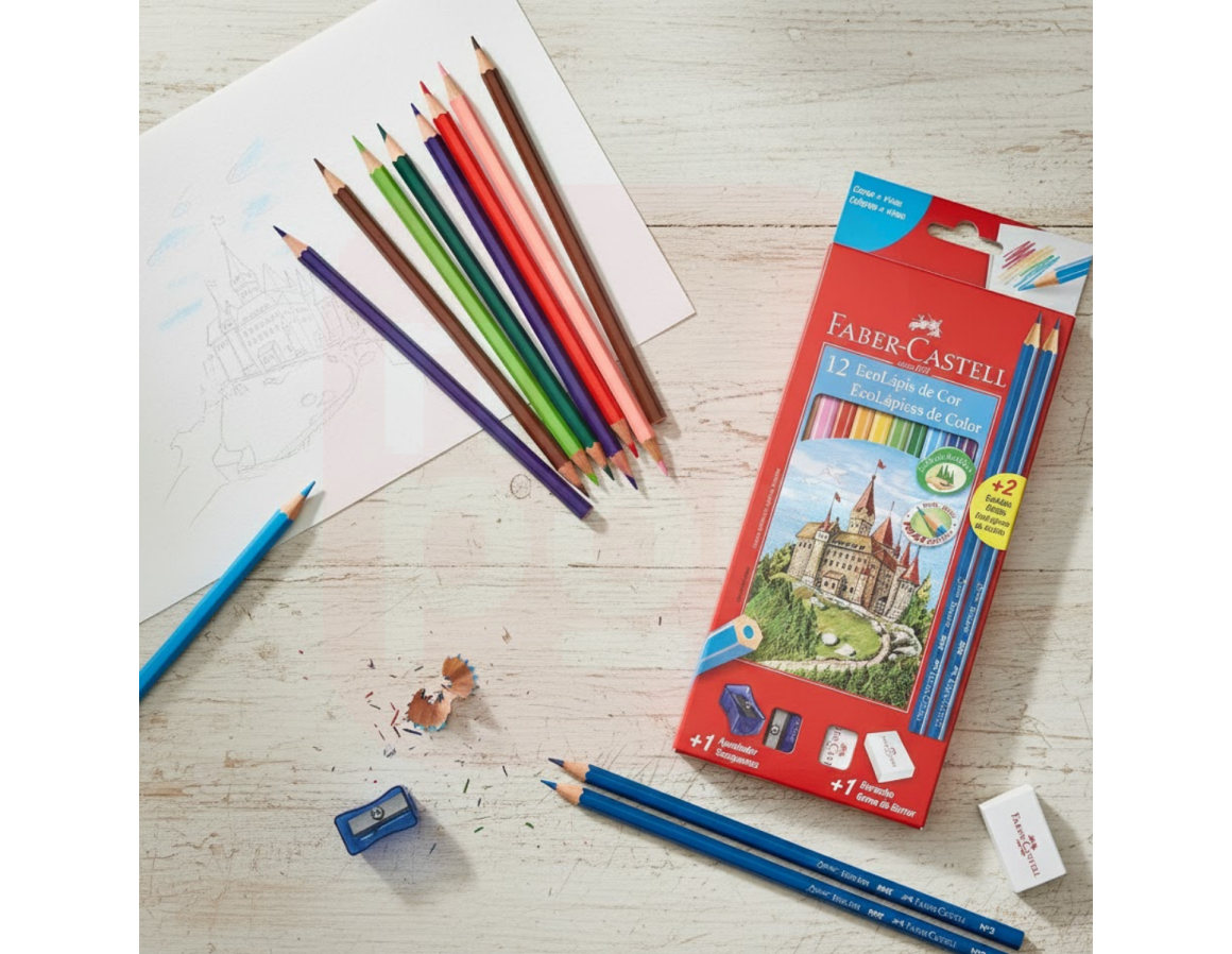 O Lápis de Cor 12 Cores com Borracha e Apontador Faber-Castell é a solução prática e completa para o dia a dia escolar ou artístico. Com 12 cores vivas e intensas, este kit oferece tudo o que os estudantes precisam: lápis de qualidade superior, uma borracha macia e um apontador eficiente, tudo da marca que é referência em materiais escolares. Os lápis possuem corpo sextavado para melhor ergonomia e ponta resistente, ideal para traços precisos e duradouros. Um conjunto completo, funcional e pronto para soltar a criatividade.